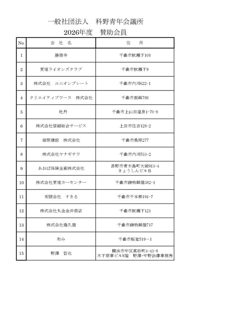 一般社団法人 科野青年会議所2026